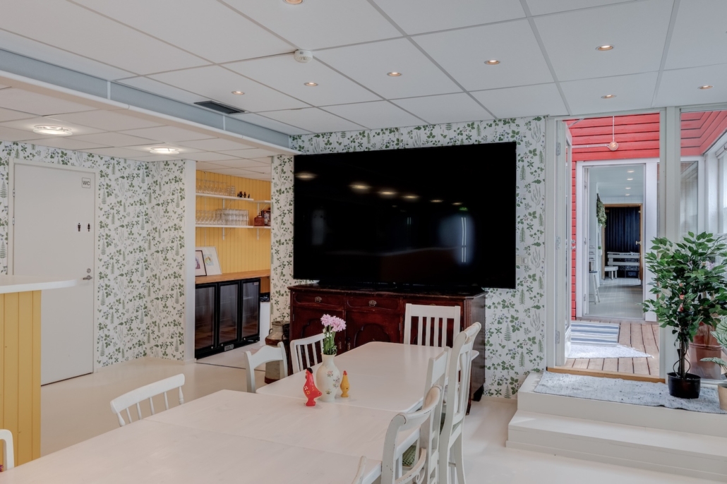 Varaukseen sisältyy kaikki tarvittava: pyyhe- ja laudeliinasetti sekä shampoot. Käytössä on myös wi-fi ja 98 tuumainen näyttö mikä mahdollistaa esitysten pitämisen rentoutuneessa ympäristössä. Cateringin voi tilata tai tuoda oman kokoustarjoilun mukaan.