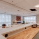 Mökkiteemainen kokoustila ja oleskelutila Sauna Pasilassa, Helsingissä.